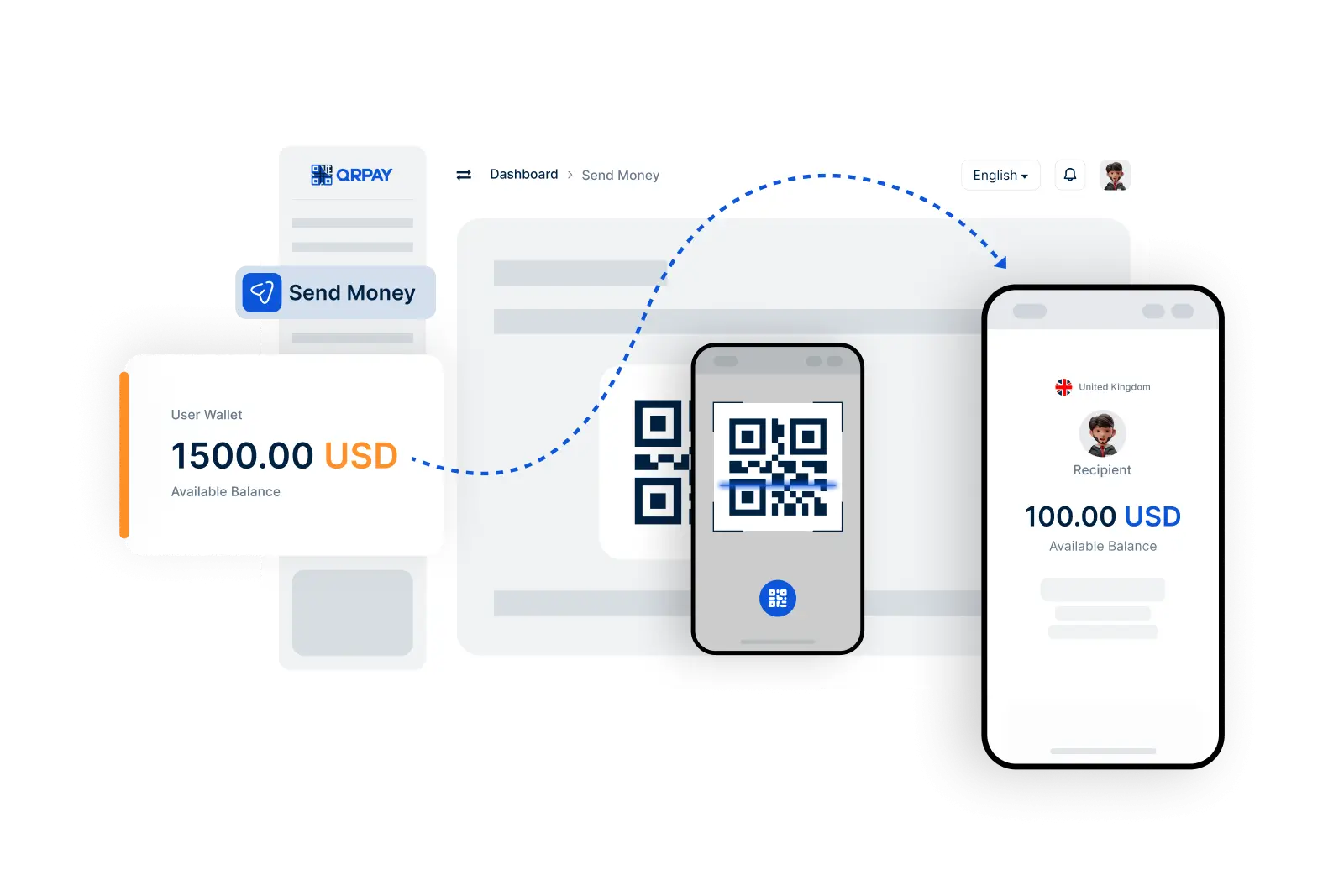 Simplemente ingrese el ID, el correo electrónico o el número de teléfono de QRPay Pro del destinatario, o escanee su código QR. Una vez que confirme los detalles, los fondos se enviarán instantáneamente a su cuenta.